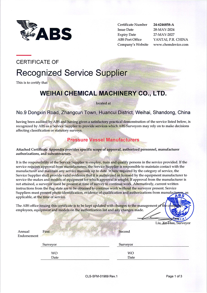 權威認證!威海化機壓力容器獲得美國船級社(ABS)資質認可