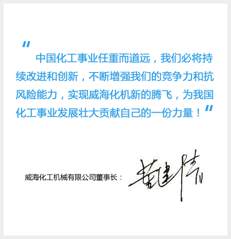 威海化工機械有限公司自成立以來始終遵循著 "以人為本、開拓創新" 的企業精神,讓員工發揮主人翁精神,為每個員工提供實現自我價值的平臺;堅守”以客戶的期望制造產品,以客戶的眼光挑剔質量"的管理方針,設身處地為客戶著想,自覺維護客戶利益,這使我們在激烈的市場競爭中脫穎而出,贏得了社會的肯定和客戶的信任。